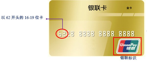 - 银联卡以62开头,卡面上只有银联一个标识(单标卡),没有Visa和Master等等。在美国刷银联卡,结算币种是人民币。