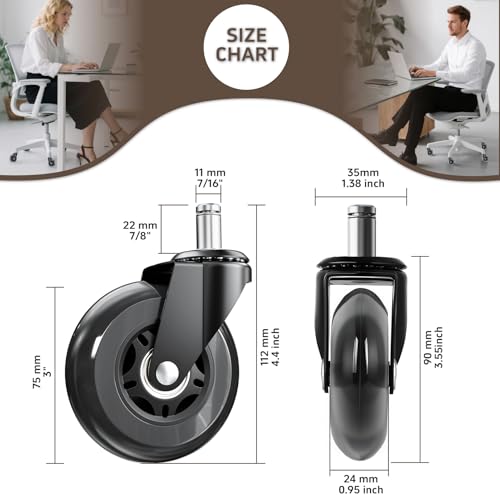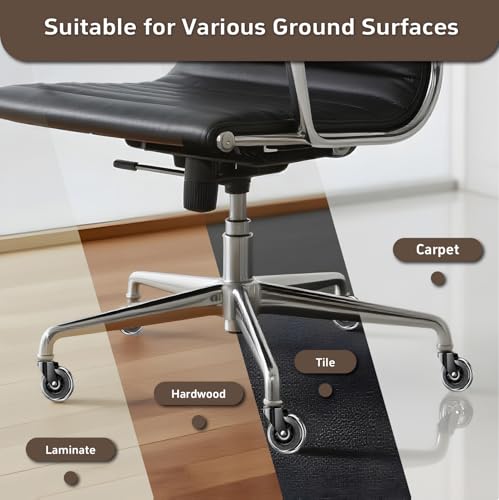 小编推荐:这款办公椅轮子套装包含5个3英寸PU静音轮,采用热处理钢架和双滚珠轴承结构,承重能力强。其非标记性PU轮面适用于多种地板,包括硬木和地毯,安装过程无需工具,方便快捷。