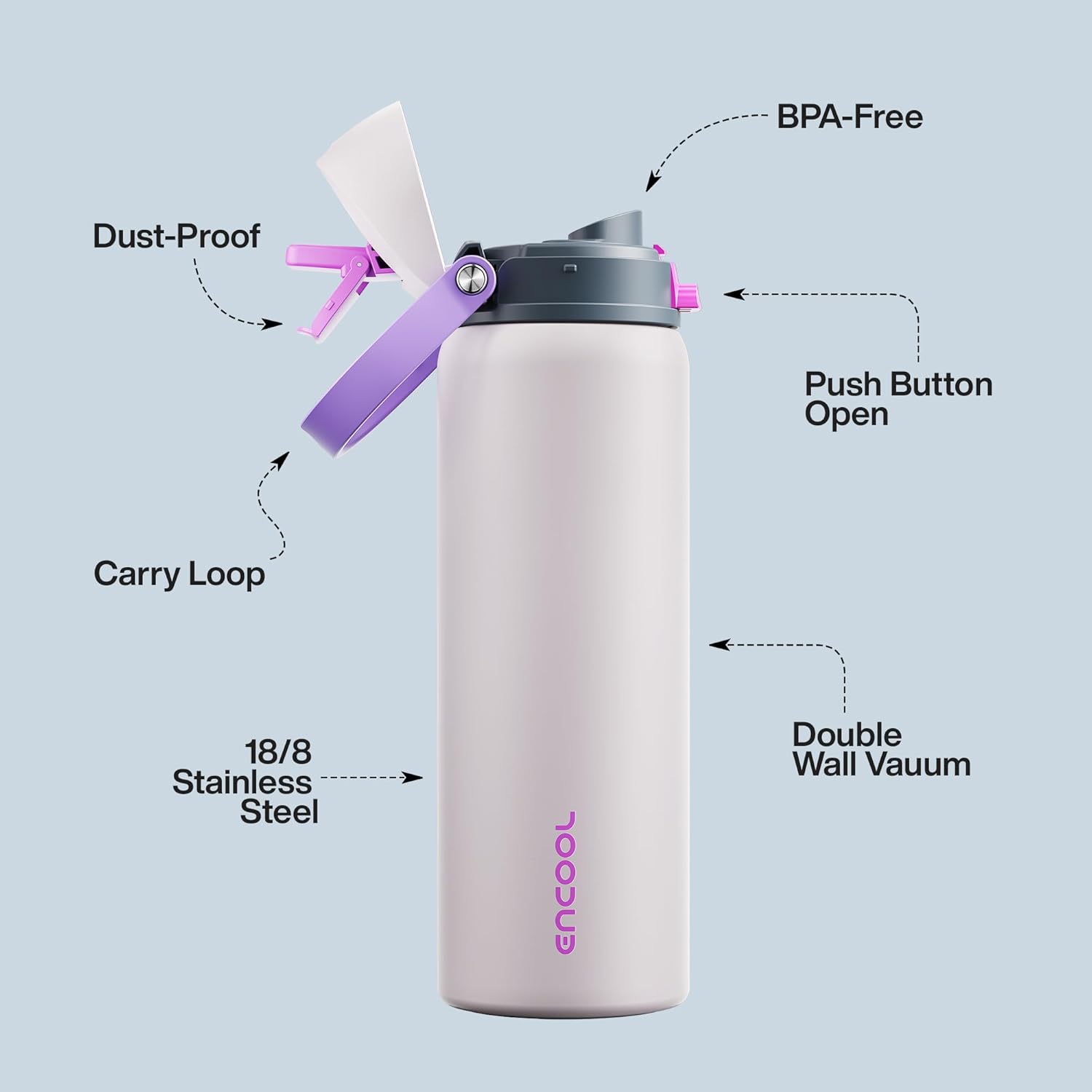 小编推荐:这款保温水瓶采用18/8不锈钢材质,不含BPA,确保饮水安全无异味。双层真空保温设计可保冷长达24小时,适合运动、旅行和日常通勤使用。2合1瓶盖设计支持吸管慢饮或翻盖畅饮,100%防漏结构让你安心携带,加人体工学翻盖手柄方便挂在包上或手提。