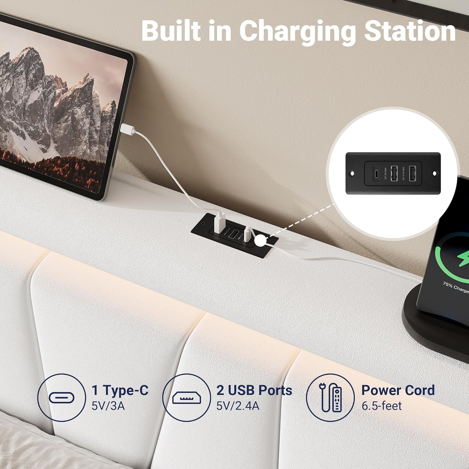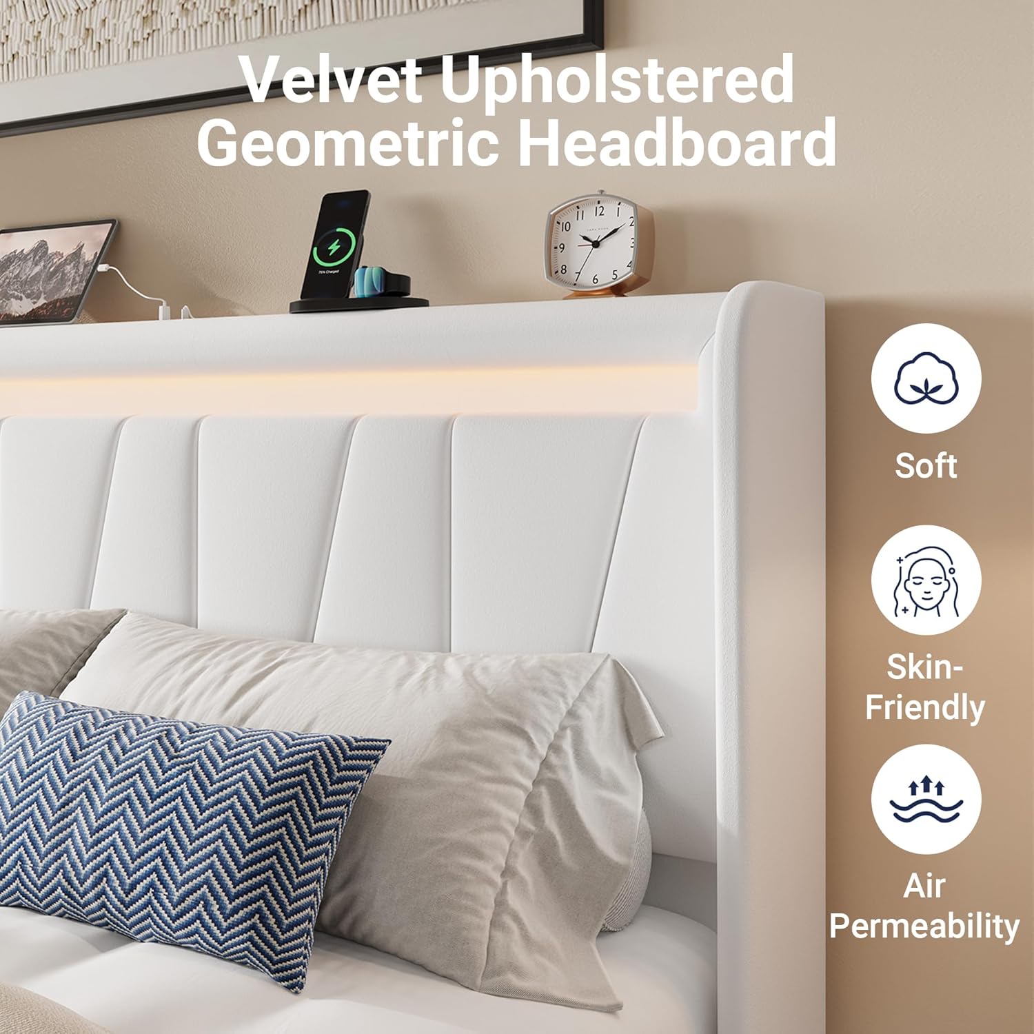 Allewie LED丝绒床架 Queen 带充电口 氛围感拉满