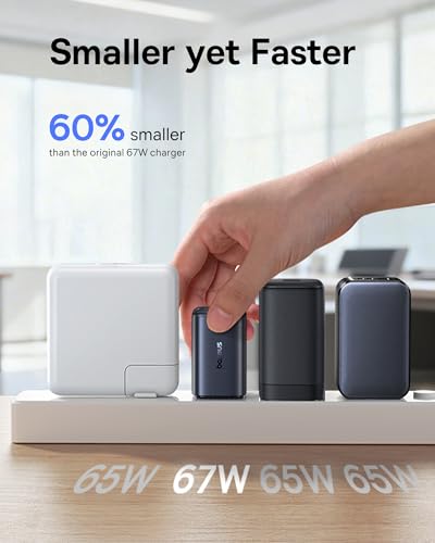 小编推荐:这款充电器采用高密度集成设计,体积小巧便携,折叠插脚节省空间。支持最高67W单口输出,可为MacBook Pro等设备全速充电。配备两个USB-C接口,支持PD3.0、QC4.0、PPS等多种快充协议,可同时为三台设备供电。内置智能芯片可识别设备并动态分配功率,确保充电安全稳定。表面采用防滑纹理设计,插在插座上也不会遮挡相邻插孔。