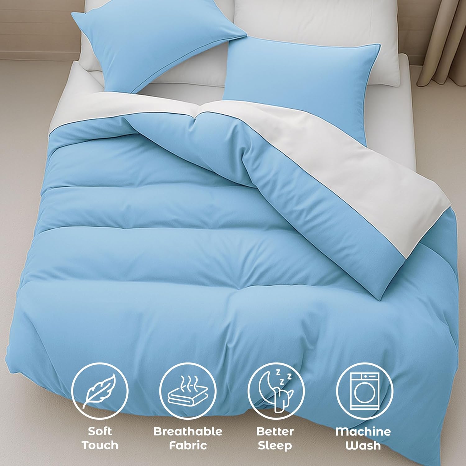 AI热评总结:⭐Amazon评分:4.1 / 5(329 Reviews)。用户普遍反馈这款被套 柔软舒适、有固定绑带不易移位、性价比高,颜色与图片相符令人惊喜。