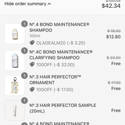 - Olaplex官网 任意单享8折+送3号修复发膜 50ml,需要使用独家折扣码 OLADEALM20 。 (不含套装、jumbo size、liter sizes)