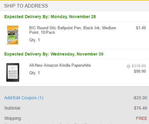 - Staples 现有 满$100减25,全场额外大促,必须使用Visa Checkout的付款方式。(无需折扣码,折扣自动显示在购物车)。使用Visa Checkout,则现价 $75.99