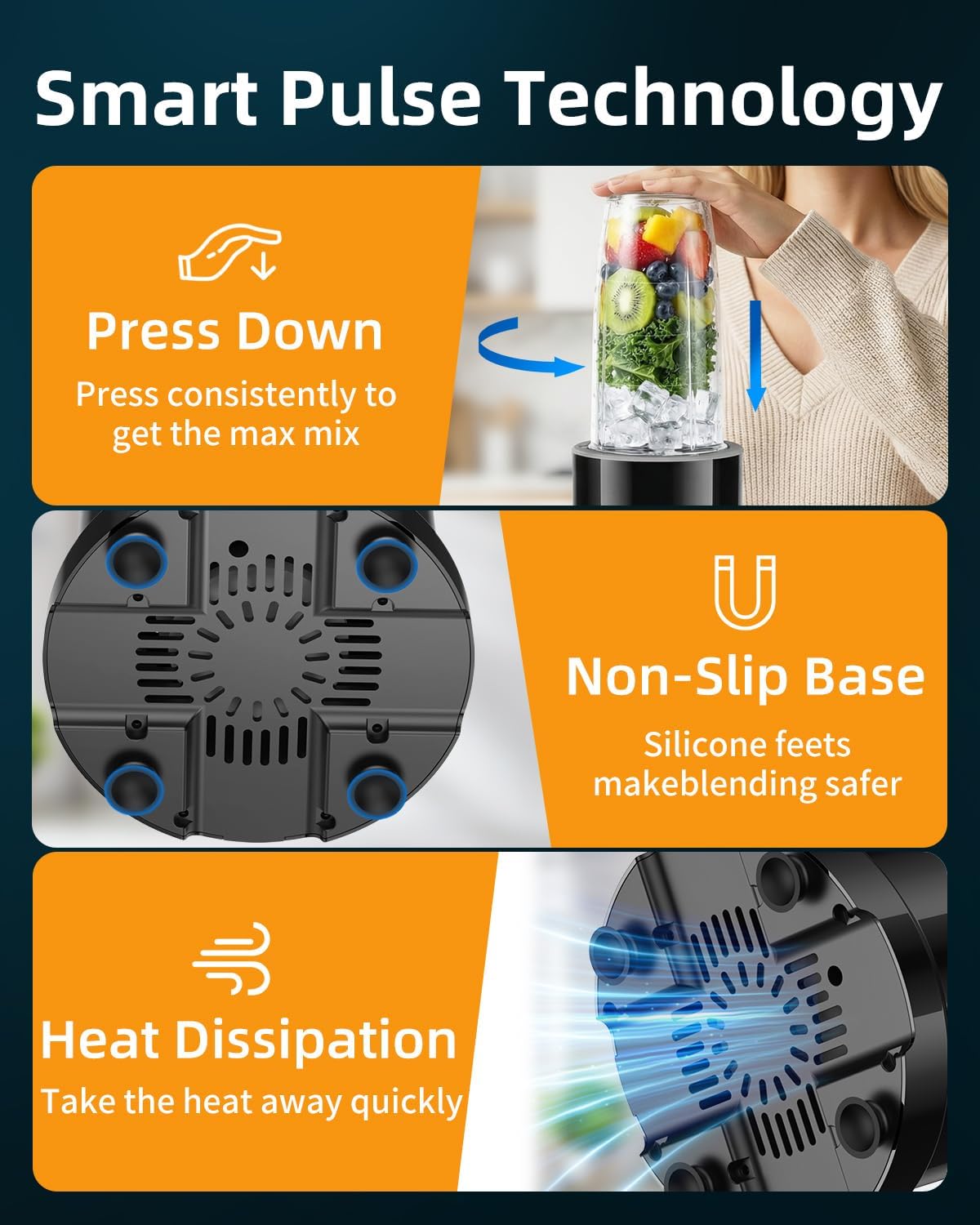 小编推荐:这款便携榨汁机配备1200W强劲电机,可轻松搅碎冰块、冷冻水果和坚果,实现细腻顺滑的混合效果。采用食品级BPA-free材料和不锈钢6叶刀片,安全耐用。机身小巧紧凑,适合公寓或宿舍厨房。配备防漏盖和吸管盖系统,可直接从搅拌杯享用饮品,免去额外清洗杯具的麻烦。内置过热过载保护,底部散热风扇和防滑硅胶垫提升使用稳定性。