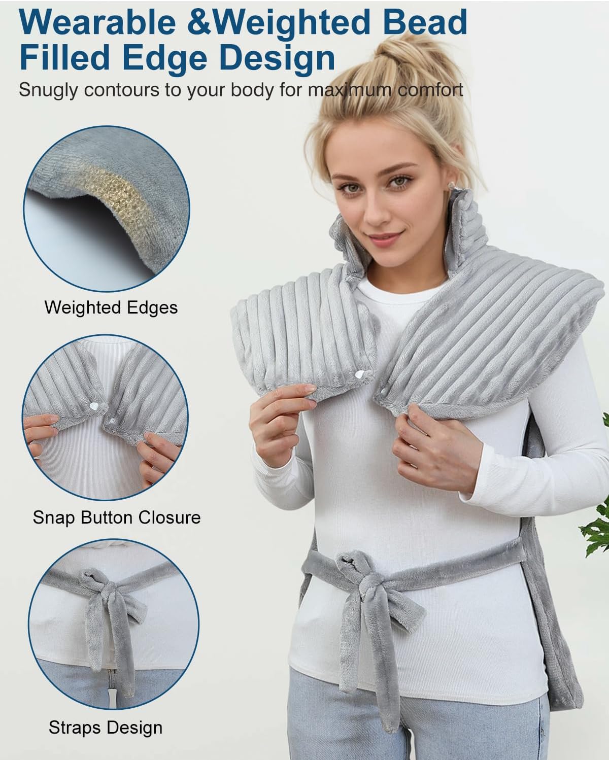 小编推荐:这款加热按摩垫采用大尺寸设计,可覆盖颈部、肩部和背部区域。内置两个振动马达,提供2档加热温度和4种振动模式组合,帮助缓解肌肉酸痛和紧张。可穿戴设计配合加厚重边、按扣和固定带,方便在放松、工作或做家务时使用。表面柔软绒布可拆卸机洗,清洁方便。