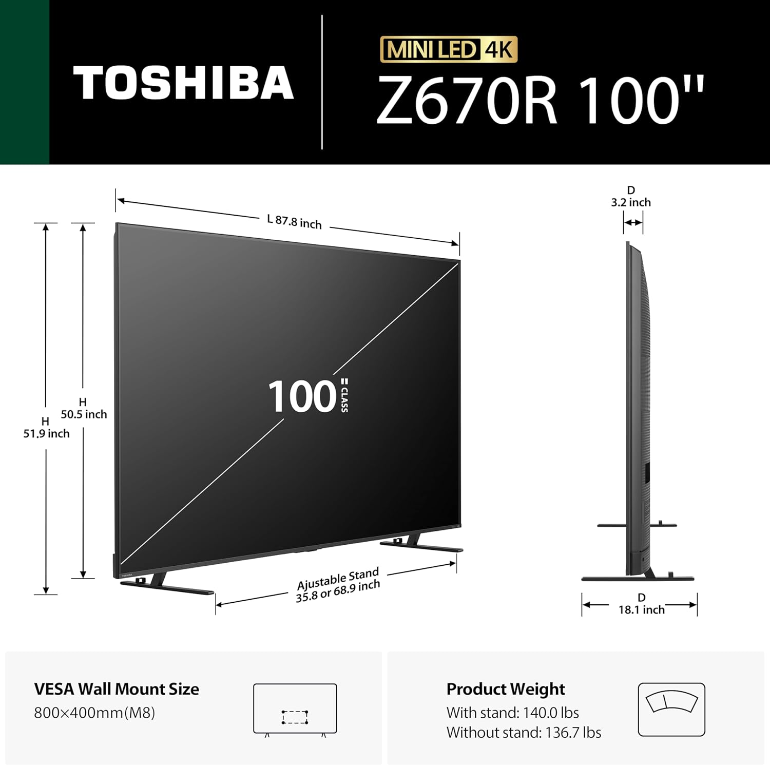 Toshiba 100Z670R 100英寸 Mini-LED 4K 智能电视