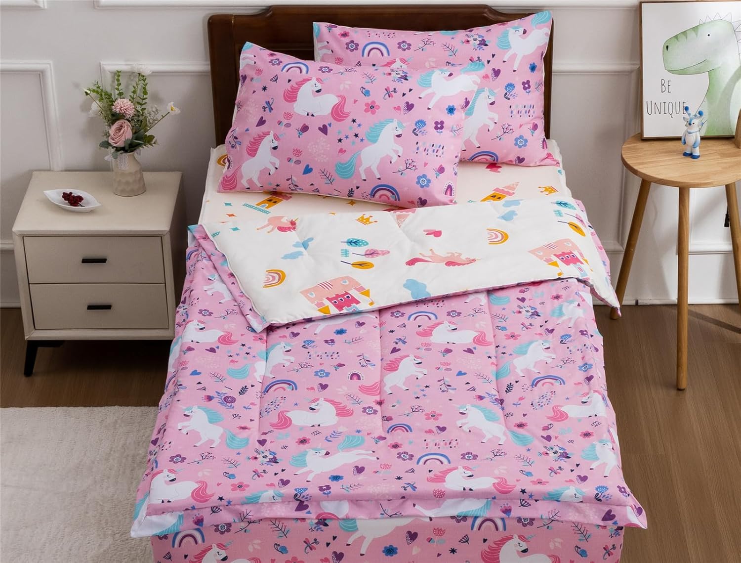 Meeting Story 彩虹独角兽儿童被套三件套 粉色