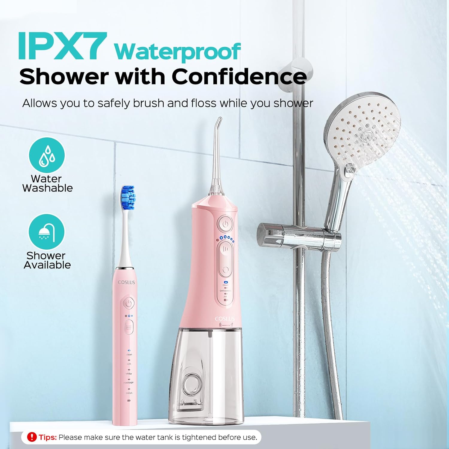 小编推荐:这款COSLUS C51C30是一款二合一的口腔清洁套装,将声波电动牙刷与水牙线功能结合。牙刷提供41,000次/分钟的振动频率,配合5种清洁模式;水牙线具备30-140 PSI可调水压和3种专用模式,适合不同口腔需求。套装设计便携,IPX7级防水,并包含多种刷头和水牙线喷嘴,适合全家不同年龄段成员使用。
