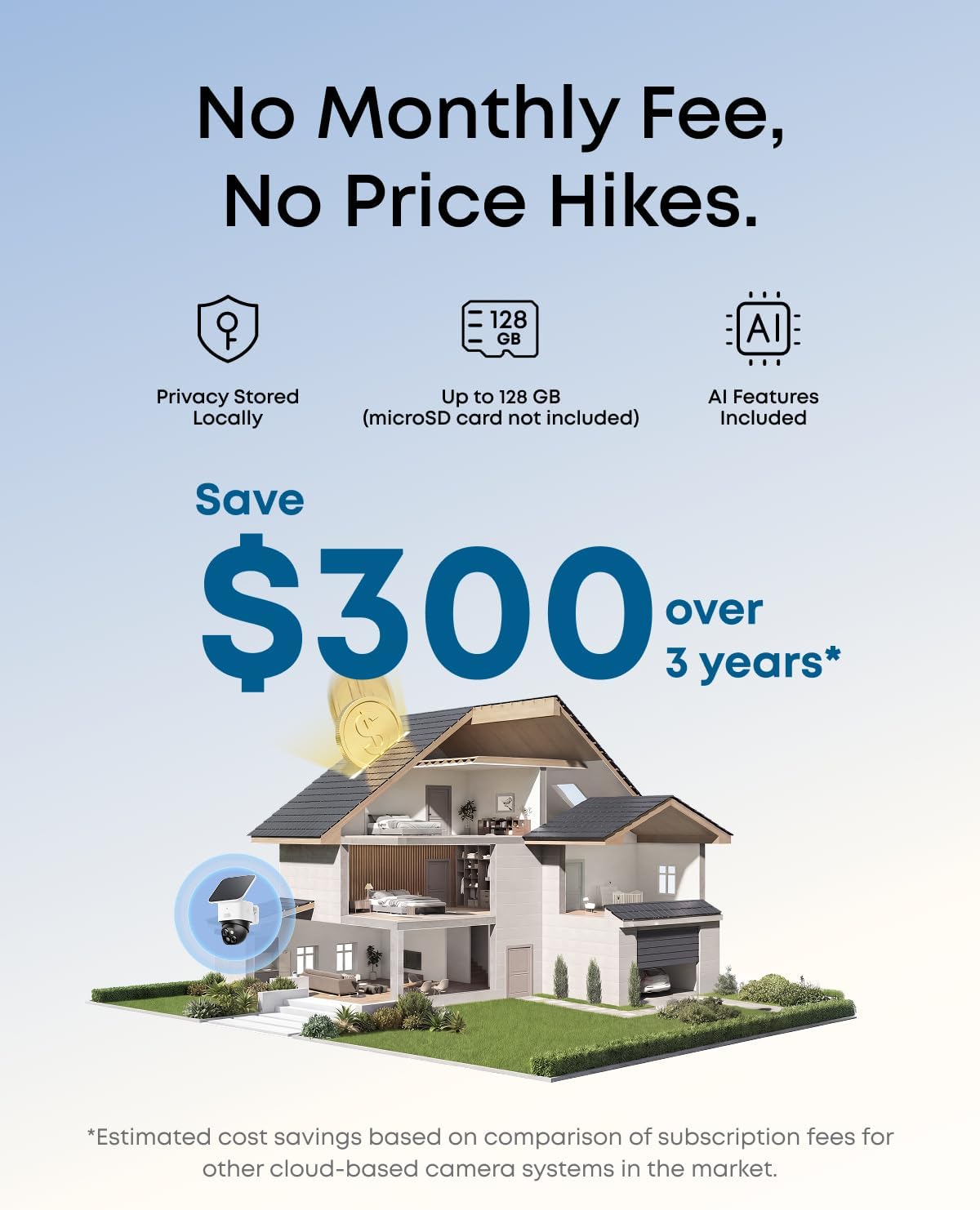 AI热评总结:⭐Amazon评分:4.4 / 5(349+ Reviews)。用户普遍反馈这款安防摄像头 画质清晰易安装、太阳能续航省心、AI追踪功能实用。