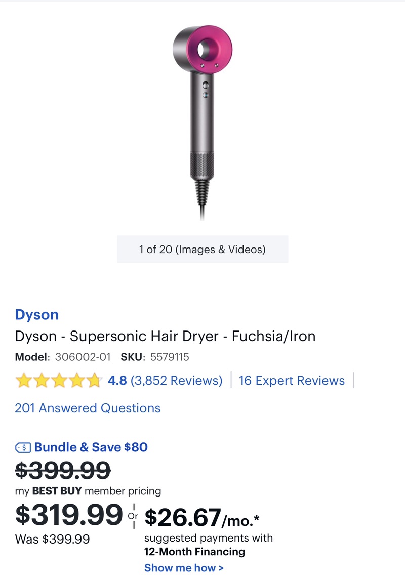 Bestbuy现在可以购买戴森等品牌的吹风机、直发器等产品打八折,税前$319.99。需免费注册MyBestBuy账户,结账时输入折扣码HairCare