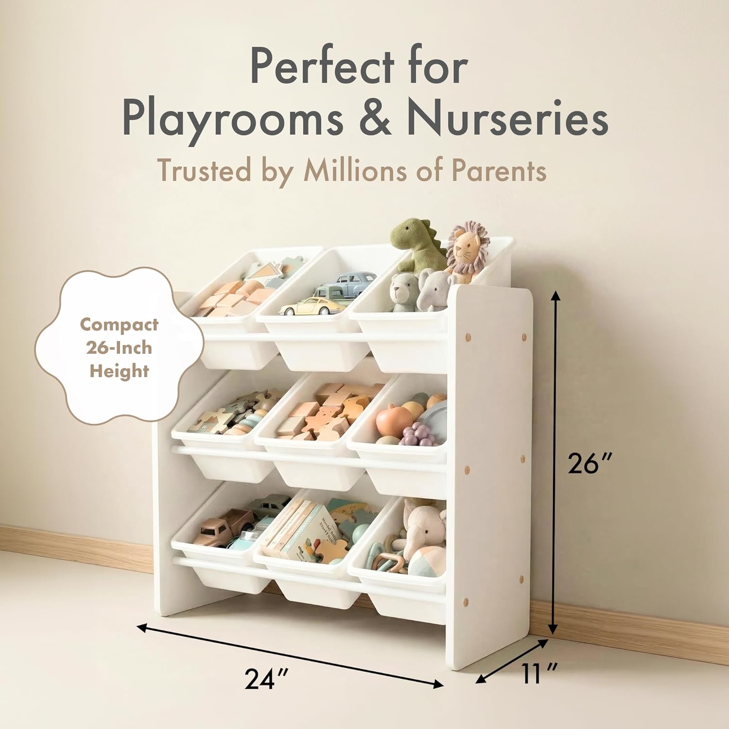 小编推荐:这款三层收纳架采用坚固的工程木材和钢制销钉加固,每层承重可达20磅。配备9个可移动的BPA和邻苯二甲酸盐塑料收纳盒,便于灵活整理。紧凑的尺寸设计适合卧室、游戏室或教室,节省空间。中性木纹与白色收纳盒的组合,能轻松融入多种室内装饰风格,同时帮助孩子培养分类和整理的好习惯。