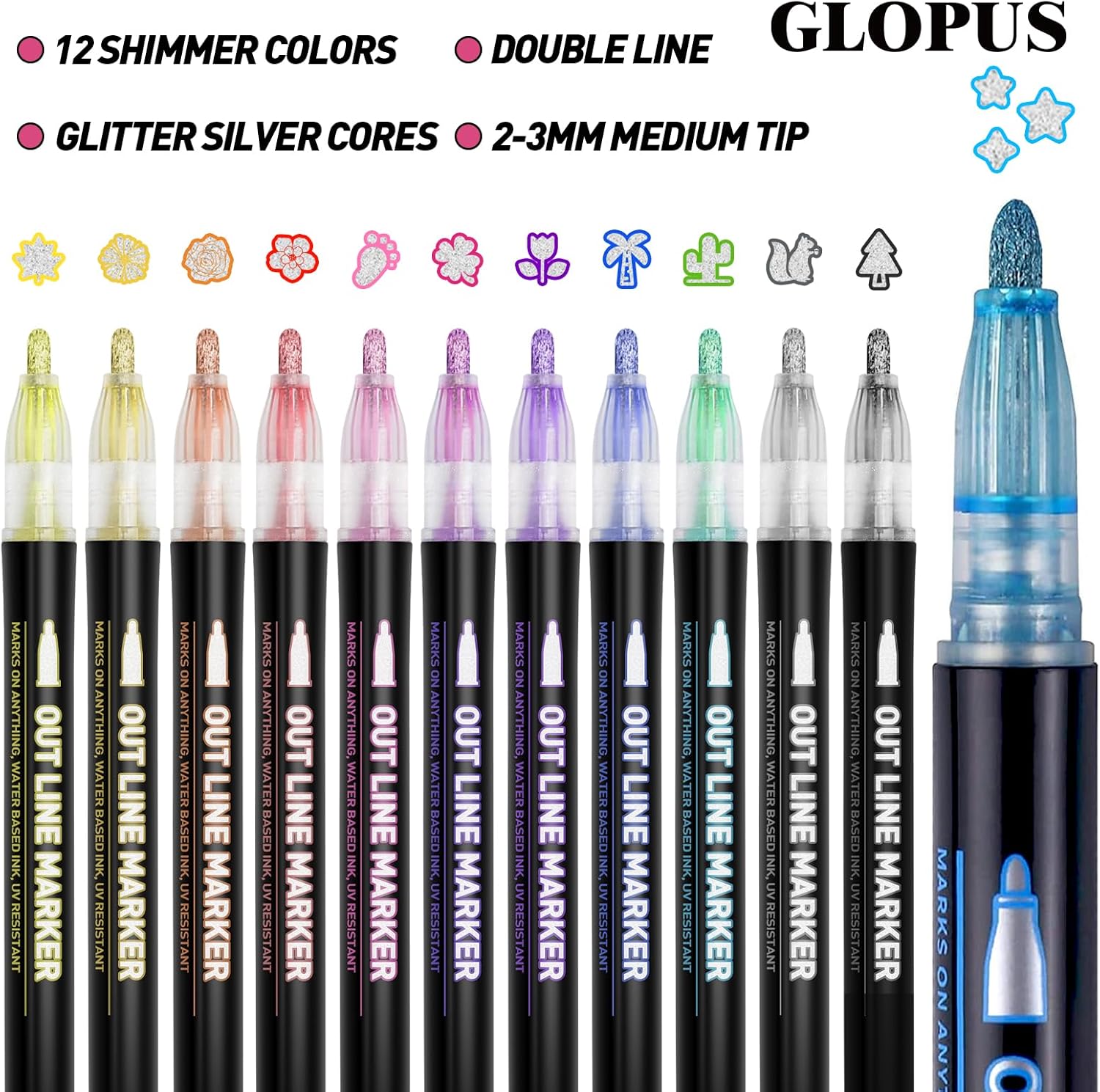 GLOPUS 自轮廓闪光金属马克笔 12色