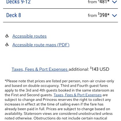 : Offer is available on select voyages and guest will know if their selected voyage is available for free 3rd/4th guests if, when selecting to travel with 3rd or 4th guests, whether the fare summary page lists $0 or whether it lists an actual cruise fare amount for such guests. 第三,第四位免費是selected voyage 最煩公主郵輪這個。還是NCL簡單明了。 Offer is available on select voyages and guest will know if their selected voyage is available for free 3rd/4th guests if, when selecting to travel with 3rd or 4th guests, whether the fare summary page lists $0 or whether it lists an actual cruise fare amount for such guests. 第三,第四位免費是selected voyage 最煩公主郵輪這個。還是NCL簡單明了。