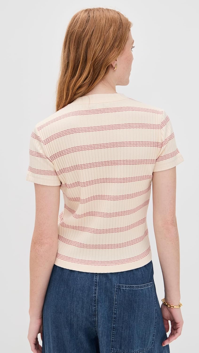小编推荐:这款Vince短袖T恤采用经典的条纹设计,简约百搭。圆领和短袖款式适合日常休闲穿着,面料舒适亲肤,是打造轻松时尚造型的基础单品。