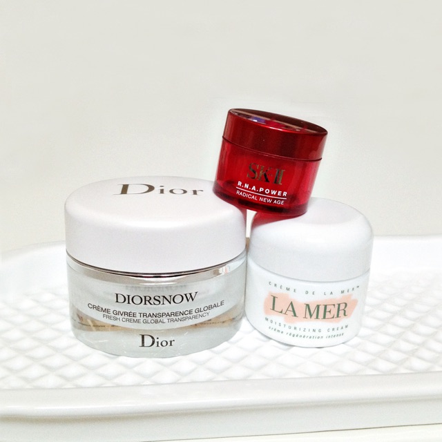 La Mer Cream: 大概人手一瓶的面霜。买它主要是它的修复跟保湿功效。平常烧菜的时候油会经常溅到手臂上,这个时候La Mer就派上用场了。以前看广告觉得哪有那么神奇,自己亲身体验了以后觉得他家的产品真的有效果。像浅一点的烫伤红肿,一抹la mer,第二天就没痕迹了,觉得有点不可思议。深一点的要经过一段时间才能看到效果。我平常极少出痘,有时由于压力出了几颗痘痘,la mer擦一下,痘痘竟然消除了!真是不敢相信!有一次我试涂了好几个产品以至于下巴过敏了。摸着好多疙瘩很粗糙,看着又没什么。后来擦了la mer,好了。就冲着修复祛痘我会继续囤货。除了修护功能,它保湿也做得很好。膏体较厚,结合精华液可以乳化的快一点,我都是擦完其他产品最后以轻压的方式上这个面霜来达到终极保湿。上完后觉得脸有光彩。睡一觉第二天醒来会觉得气色好且饱满,看着就觉得欢喜。 ...