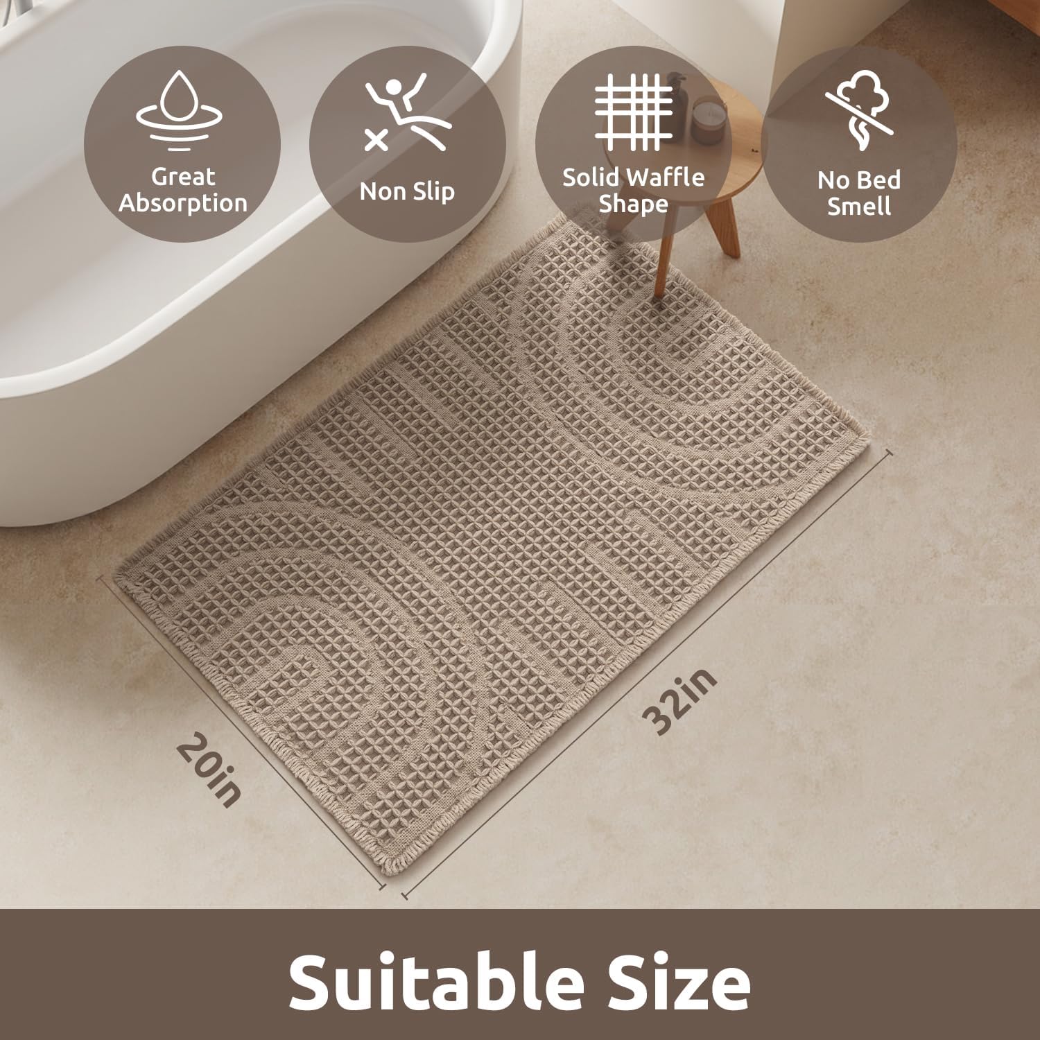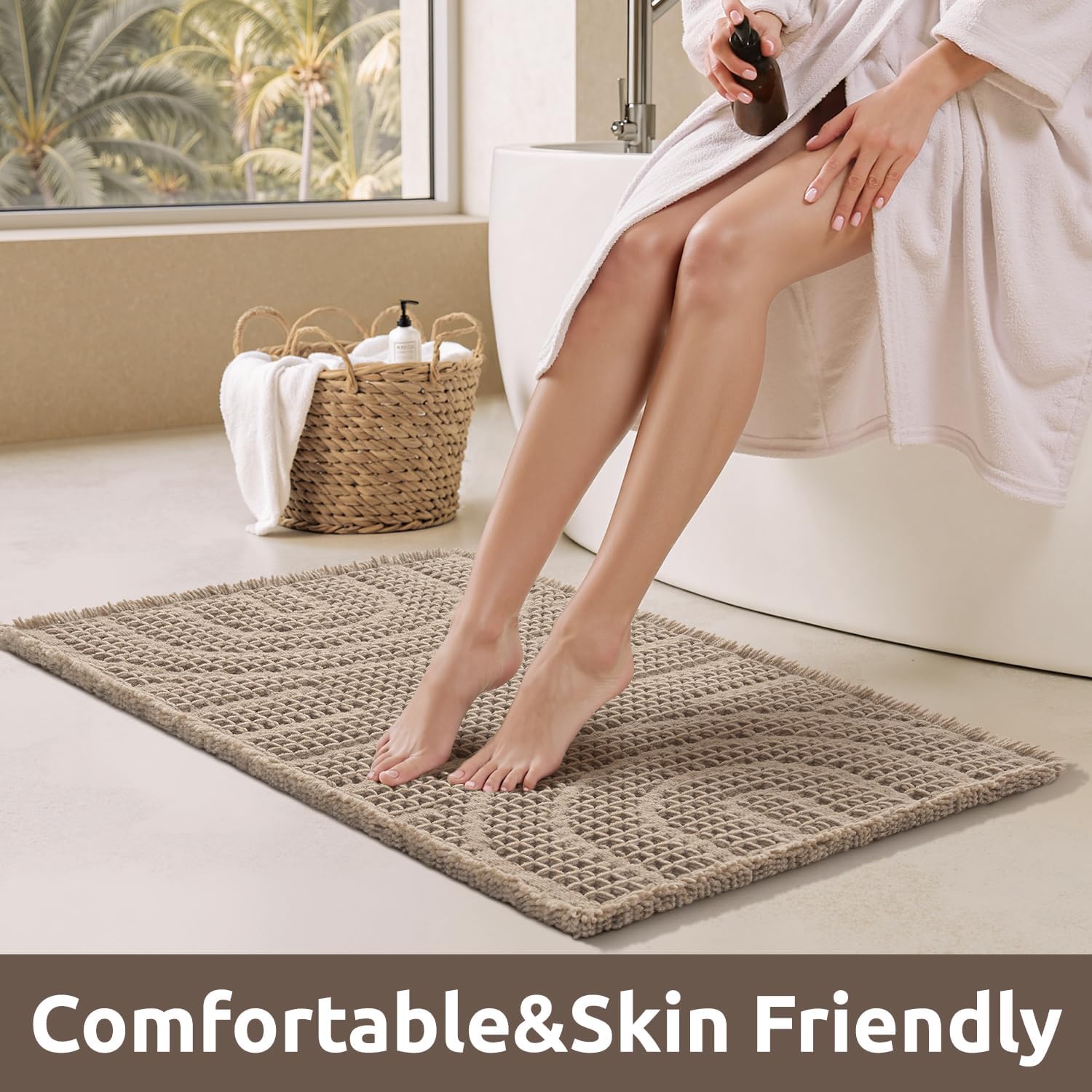 小编推荐:这款浴室踏垫采用独特的华夫格双层面料,吸水迅速,能有效保持淋浴区地面干爽。三维立体结构不仅提升了吸水效率,也加速了空气流通,使垫子干得更快。底部采用热熔胶防滑点设计,在光滑地面上提供稳固抓地力,同时避免了橡胶异味。垫身柔软,提供舒适的脚感,并配有流苏装饰,能为浴室增添温馨风格。支持机洗,日常打理方便。