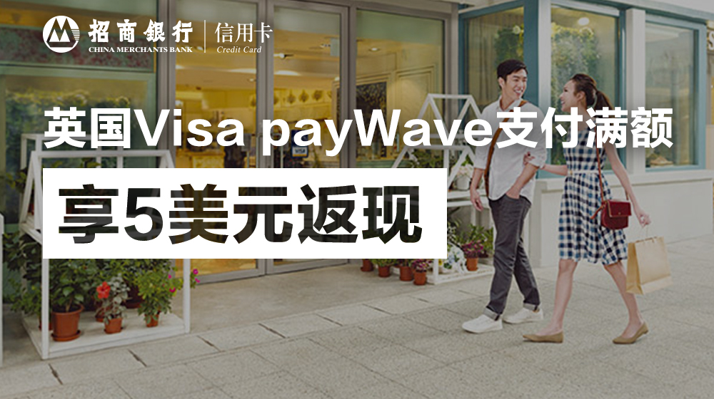 2017年5月15日至2017年10月31日,持Visa全币卡在英国通过Visa payWave方式消费,单卡累计消费满50美元返现5美元。每卡限返现1次,返现名额有限,先刷先得,返完即止。- 活动详情