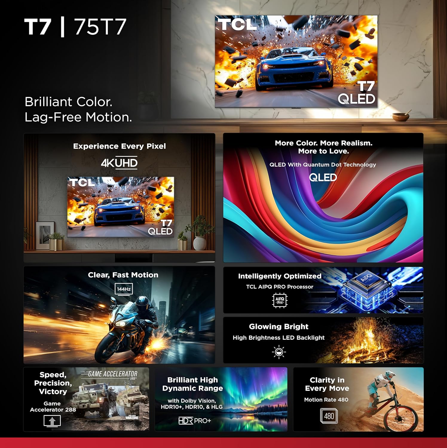 TCL 75T7 75英寸 4K QLED 智能电视
