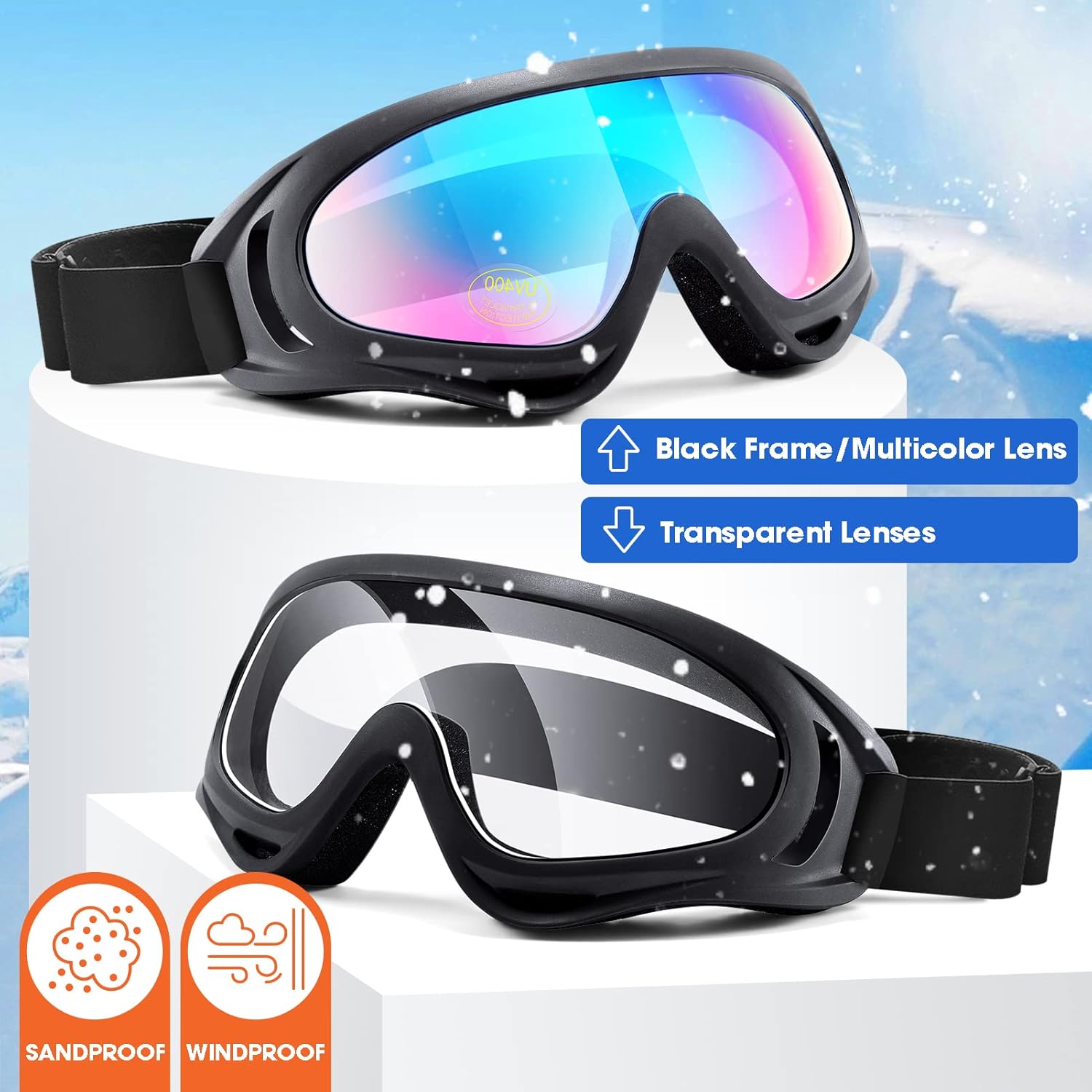小编推荐:这款滑雪镜套装包含两副,适合5岁以上儿童、青少年及成人使用。配备多功能镜片,彩色镜片可过滤紫外线与雪地强光,透明镜片适合阴天,橙色与黄色镜片则提升夜间视野清晰度。采用弹性ABS框架与抗冲击PC镜片,顶部通风孔设计有助于防雾。镜框配有柔软海绵垫层,长时间佩戴舒适。可调节头带适配佩戴头盔或不戴头盔的情况。