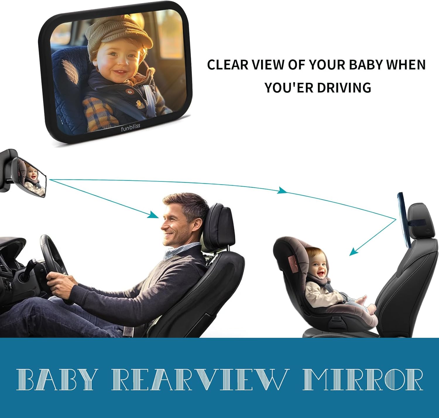 funbliss 婴儿后座镜 高清黑色防碎