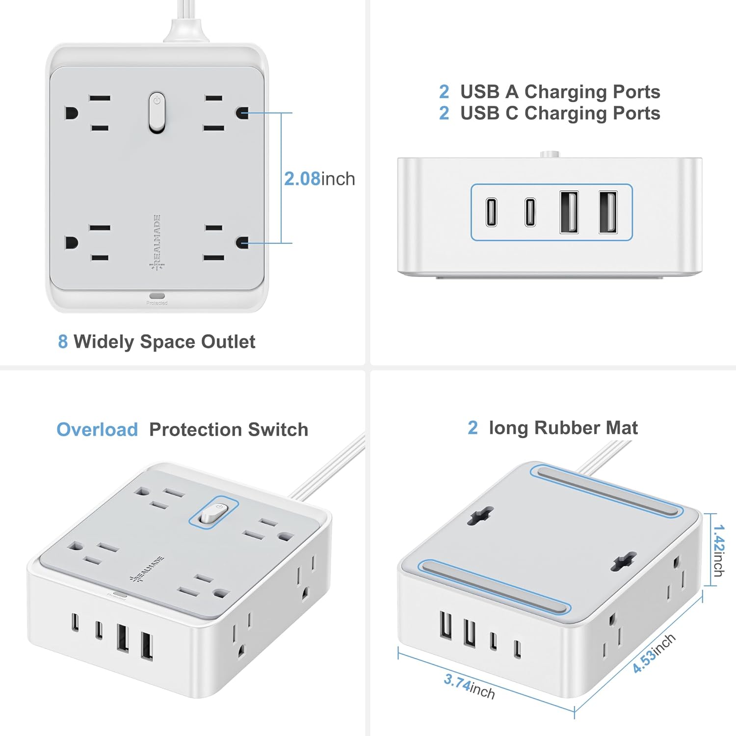 • Amazon 现有 REALMADE 电源排插 8AC 10英尺 灰白色,现价$8.49(指导价$16.99),需使用折扣码 URCUST6Y
