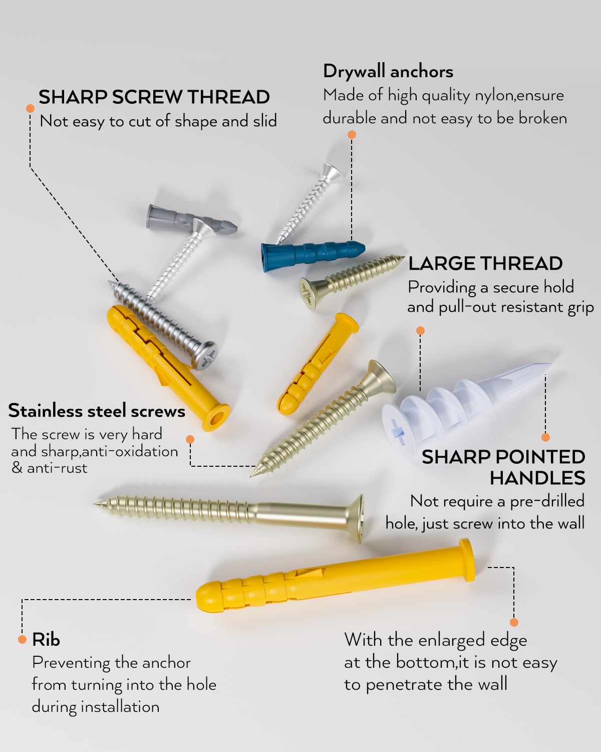 AI热评总结:⭐Amazon评分:4.6 / 5(763+ Reviews)。很多用户表示这款墙锚套装 材质坚固、规格齐全、收纳方便,适合挂画或装饰品使用。