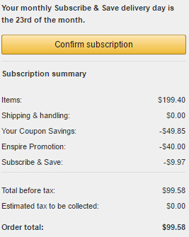 小贴士: 一个月内订阅或发货5件以上Subscribe & Save商品更有额外85折优惠。订单发出后,如不需要继续订阅,还可以随时取消服务!
