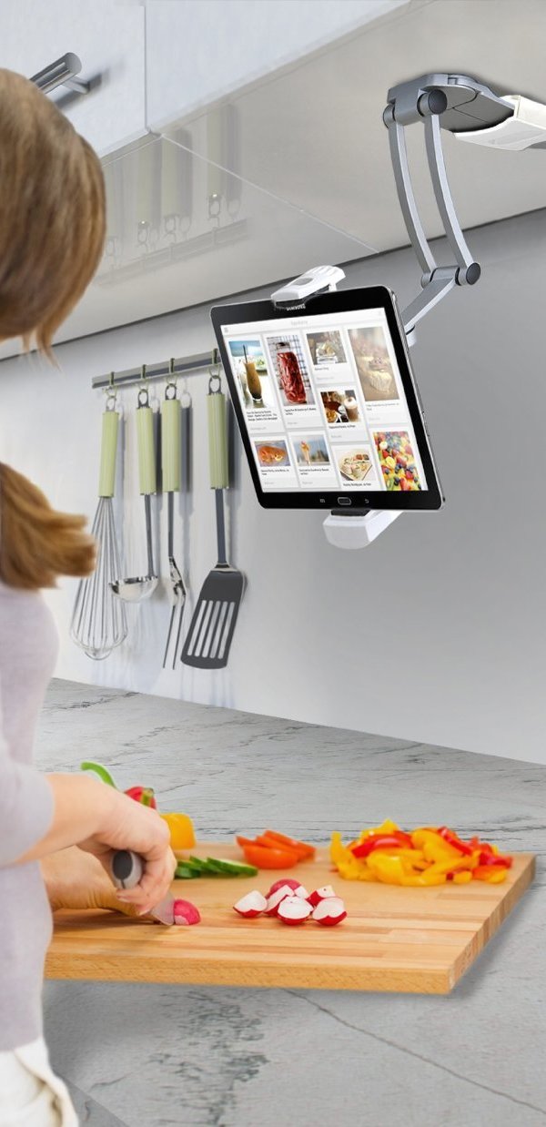 做饭娱乐两不误!食谱支架类商品销量冠军!CTA Digital厨房2合1平板底座,现价$29.28。适用于iPad/Mini/Air和所有平板电脑,设计独特,可立放在平面上,为了节省空间也可挂到墙上、冰箱上或橱柜上等,边做饭边看剧,聊天,微信,看北美省钱快报都完全没有问题!