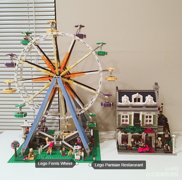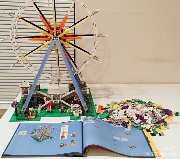 之前看到很多乐高粉都拿这款摩天轮进行改装,比如为它装上小灯泡串,晚上的时候,看起来很美很梦幻。前年生日的时候,老公就手摇着摩天轮为我唱生日歌,基友们看了我发的小视屏,都说浪漫的不行。对了,我在油管上还看到,有乐高粉在某节车厢里放了戒指,用来求婚。