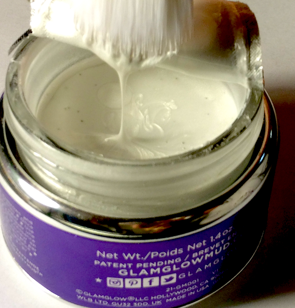 先上开瓶后的第一印象:Glamglow发光面膜是泥状的闪闪发光的银色流体,里面有颗粒状的杂质;质感特别浓,质地厚重;散发着很好闻的椰子香,这一直让我想到哈利波特里描述的独角兽血液,深度哈迷懂我~毛刷质感不错,毛很软很密,比买化妆品配送的化妆刷的手感都好很多哦~右图是我用毛刷蘸起泥状面膜,可以看出藕断丝连的质感,感觉面膜泥特别有弹性和延展性~