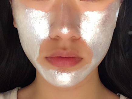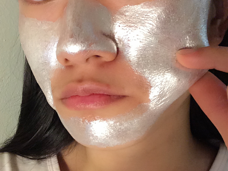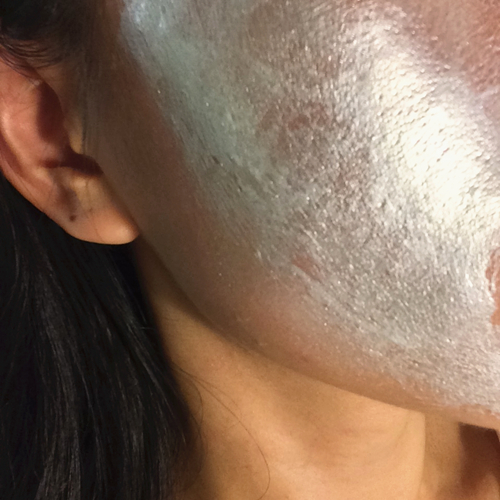 使用方法和别的glamglow面膜几乎差不多,就是清洗皮肤,把Glamglow面膜糊在脸上,等20分钟,撕掉,最后用水洗干净没撕下来的剩余面膜。每周使用两次。我均匀的上完之后长下图这样,这是刚刚涂上的时候的样子,撕拉面膜泥在脸上特别服贴,毛刷真的很好用!Glamglow面膜在灯照下闪闪发亮,我表示从来没有用过这么时髦的金属色撕拉面膜呢(微笑脸)