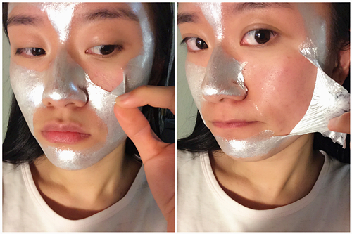 撕拉式面膜刚刚上脸的时候有一股热感,但是感觉温和不刺激;过大概6分钟之后热感就消失了,或者是皮肤习惯了这种感觉…面膜特别容易干,我看了表,3分钟就完全干了…比黑罐快啊~说明书上写(对,我看了巨长的说明书,然后现在我可以简洁地告诉你们怎么使用),撕拉式面膜在使用过程中产品会变色,可是我并没有发现它变色了…