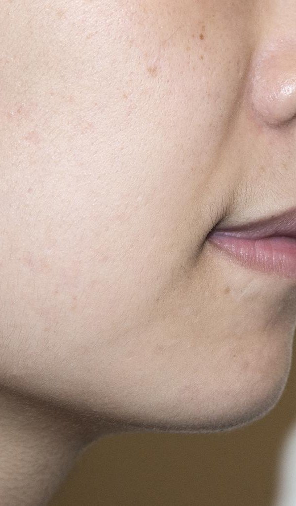 对比可以看到脸颊部分略有光泽,也略微去了些些黄色。