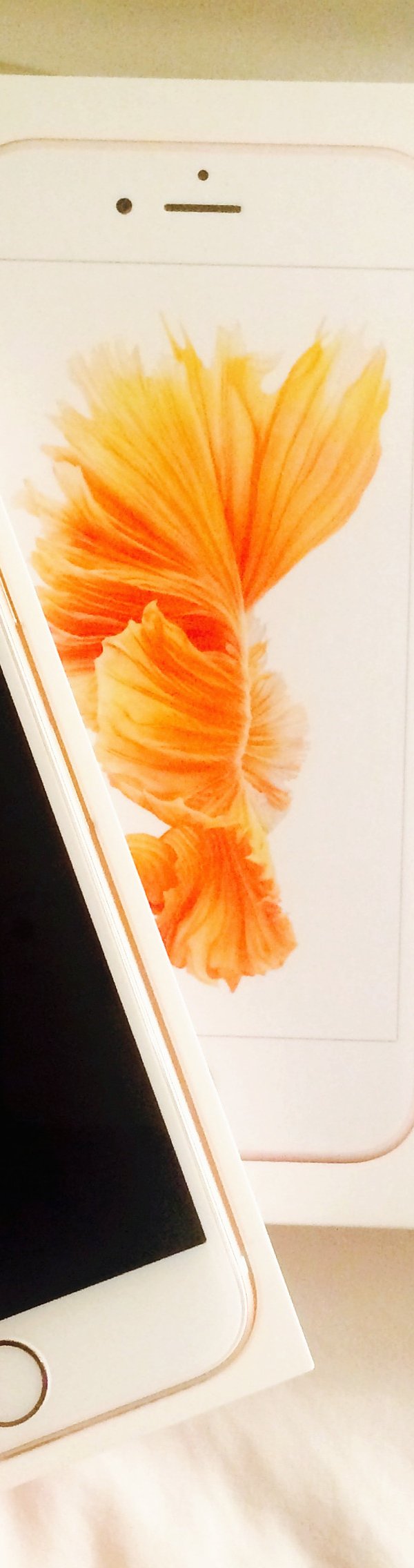 当然机身上是有保护膜的,我们玩了一会又放进去拍照。包装设计沿袭了苹果一贯的极简主义,反正妈妈觉得那条金鱼挺好看的,所以我表示满意~