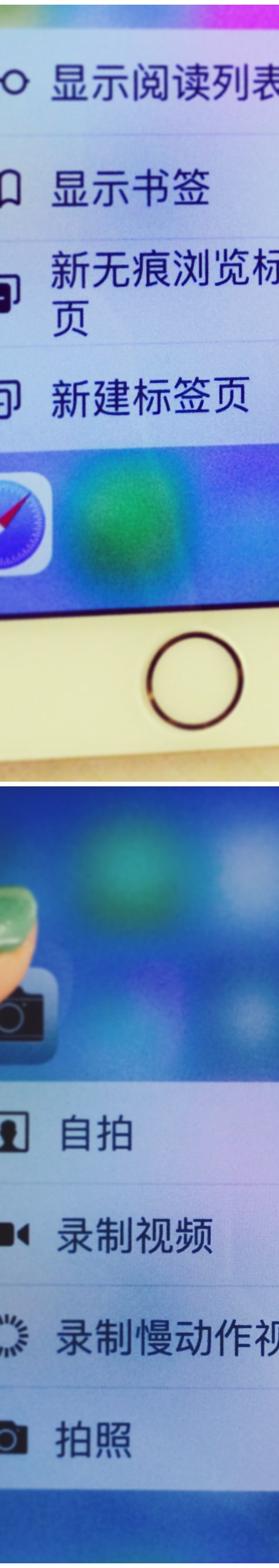 除了普通的点击,轻按以及稍大力按都可能出现Peek/Pop界面,效果如图: