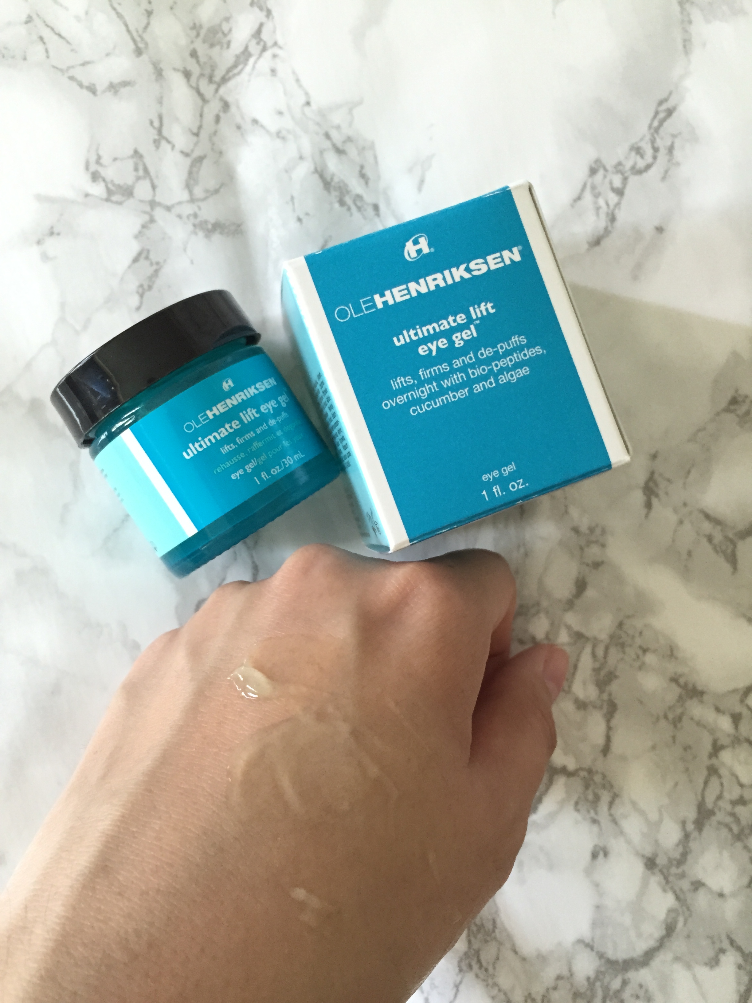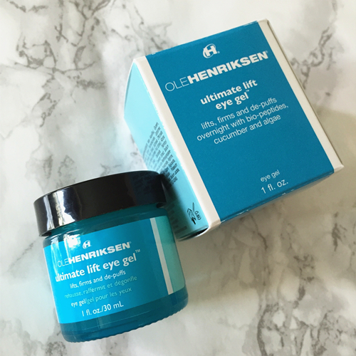 Ole Henriksen 家的眼部啫喱 Ultimate Lift Eye Gel,质地是淡蓝绿色的啫喱状,而且眼部啫喱有一股淡淡的青瓜味(或者说是海藻味吧)…