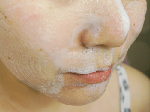 这款洁面产品挤出来是是乳状。流动性较强,用手轻轻的能打出少许泡沫,泡沫很稀,不太浓稠。