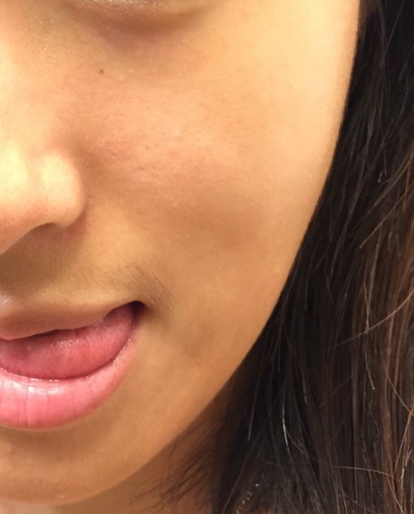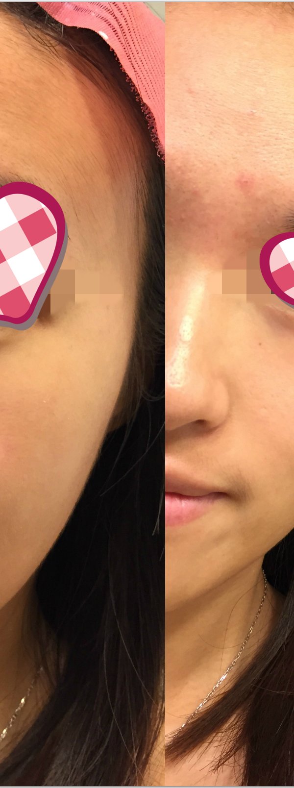 主要让大家看一下脸颊额头的毛孔变化,以及眼纹的变化。