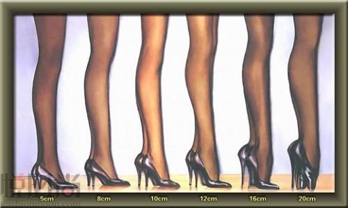 一定要记住跟不是越高越好!看见下面这张图了吧,在小腿围相同的情况下,跟高不同对腿型的影响就不同。大于10cm 的高跟不仅不会起到修饰腿型的效果,还能使小腿肌肉更加突出,很难看有木有(当然如果你是Alexa Chung 那样的小鸟腿或Karlie Kloss 那样的超模腿请自动忽略此条)!
