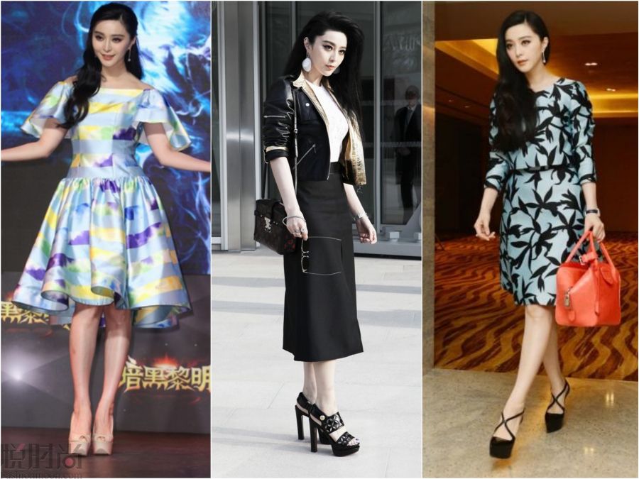说到防水台就不得不提范爷这个忠实的拥趸者,出席活动穿、看秀穿、日常出街也穿。确实让她一直被吐槽的双腿看上去细长直了许多。