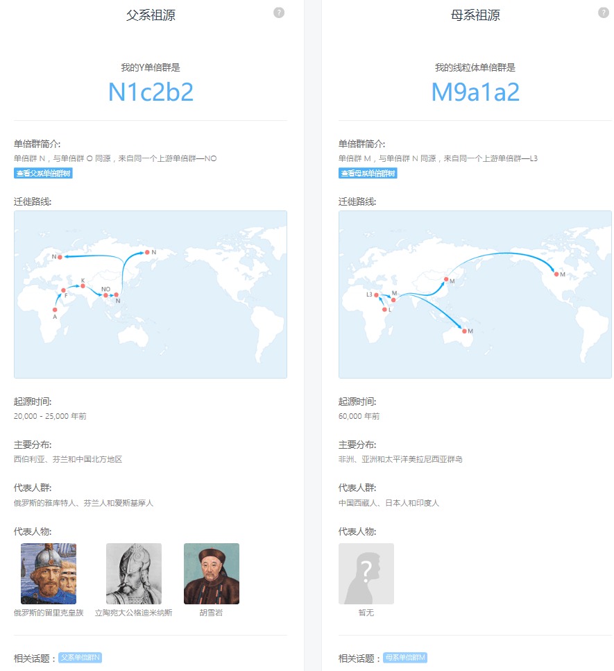 好了,接下来要解决抽“SSR“的问题。在父母祖源检测中,中学生物书上人类起源于非洲的说法再次得到印证。点击”查看父系/母系单倍群树“还可以看到类似于家族家谱的单倍群树,此外你还可以看到自己祖先的迁徙路线、起源时间、分布和代表人物等。由于祖源信息有待完善,码少也希望大家在测试以后参加祖源信息调查,进一步完善我们自己的基因图谱。至于SSR,码少选择删游戏。