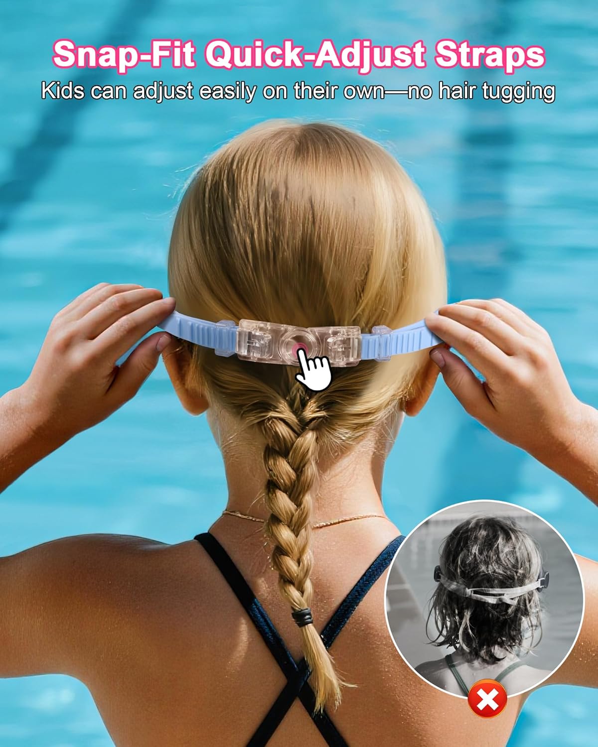 AI Hot Review Summary: ⭐Amazon Rating: 4.4 / 5 (332 Reviews). Many users say these kids' swim goggles fit well without pulling hair, have great anti-fog performance, and are easy to put on and adjust, making them ideal for children who dislike hair pulling or are just learning to swim.