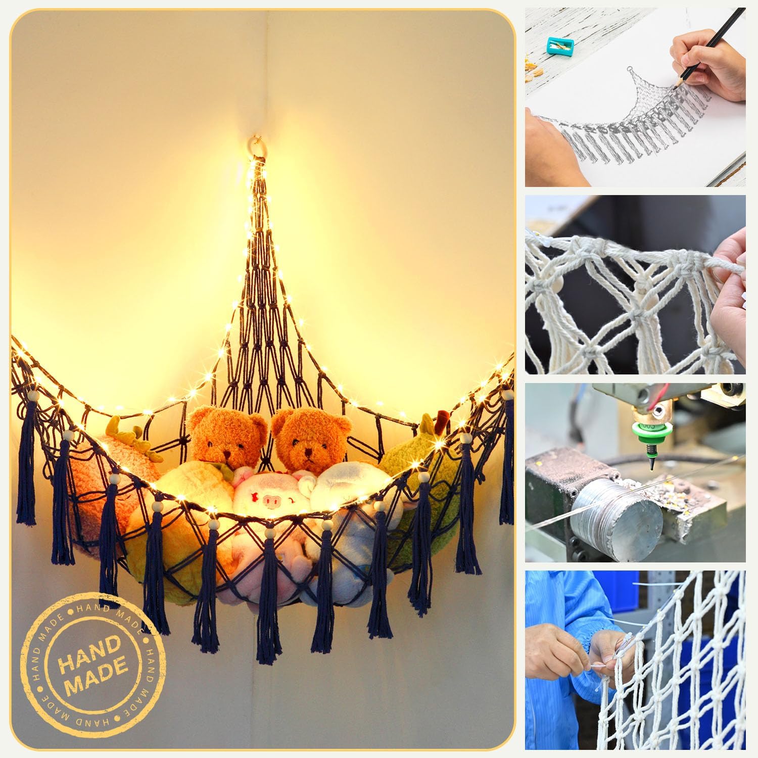AI Review Summary: ⭐Amazon Rating: 4.7/5 (375+ Reviews). Users generally report that this plush toy hammock is easy to install, provides stable support, features cozy lighting modes, and effectively stores and displays numerous stuffed animals.
