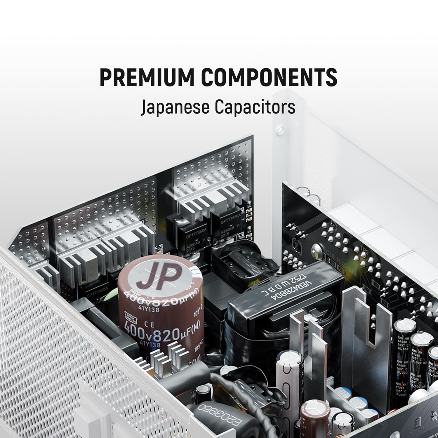 Editor's Pick: This white fully modular power supply has a rated power of 1000W, compliant with ATX 3.1 and PCIe 5.1 standards, and features native 12V-2x6 connectors to provide sufficient power for the newest generation of graphics cards. With both 80 PLUS Gold and Cybenetics Gold certifications, it delivers excellent energy efficiency. It employs OptiSink cooling technology and a 135mm fluid dynamic bearing fan, along with hybrid fan control that enables silent operation at low loads.
