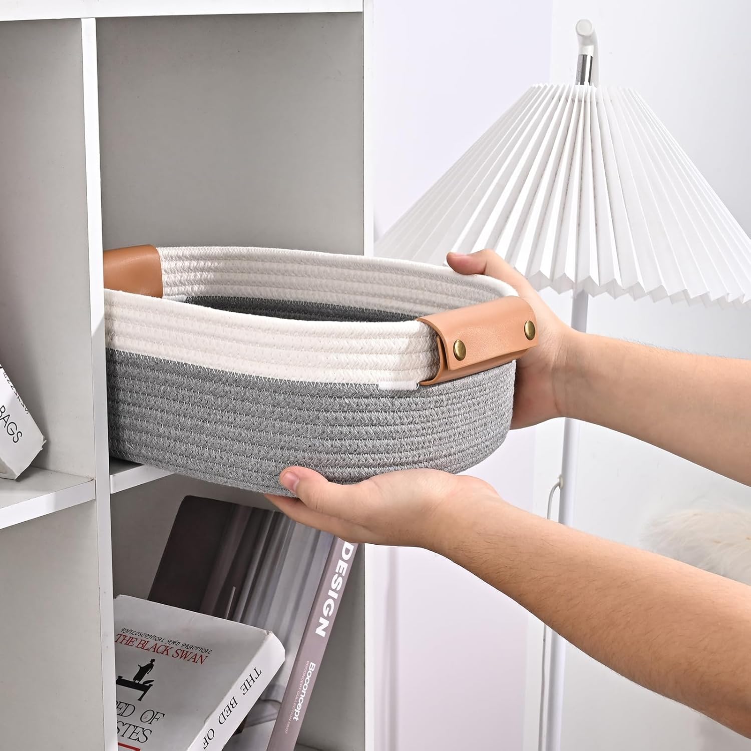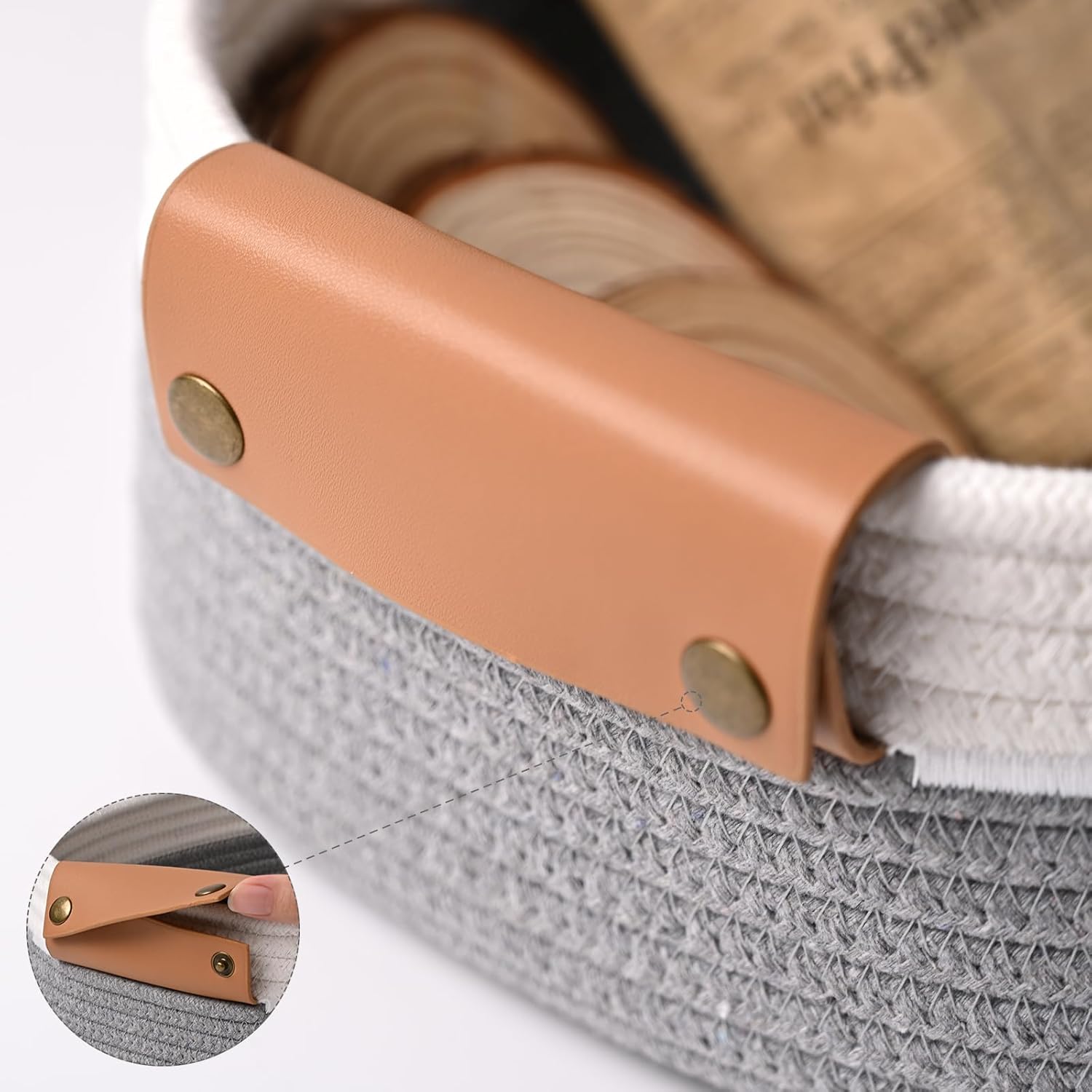 Editor's Pick: This storage basket set includes 6 cotton rope baskets in different sizes, each with leather handles for easy carrying. Made from high-quality natural cotton rope with handcrafted weaving, these baskets are soft and moisture-resistant, perfect for storing towels, toys, snacks, or small items like keys. The variety of sizes makes them versatile for use in bedrooms, bathrooms, kitchens, or children's rooms, combining both practicality and decorative appeal.