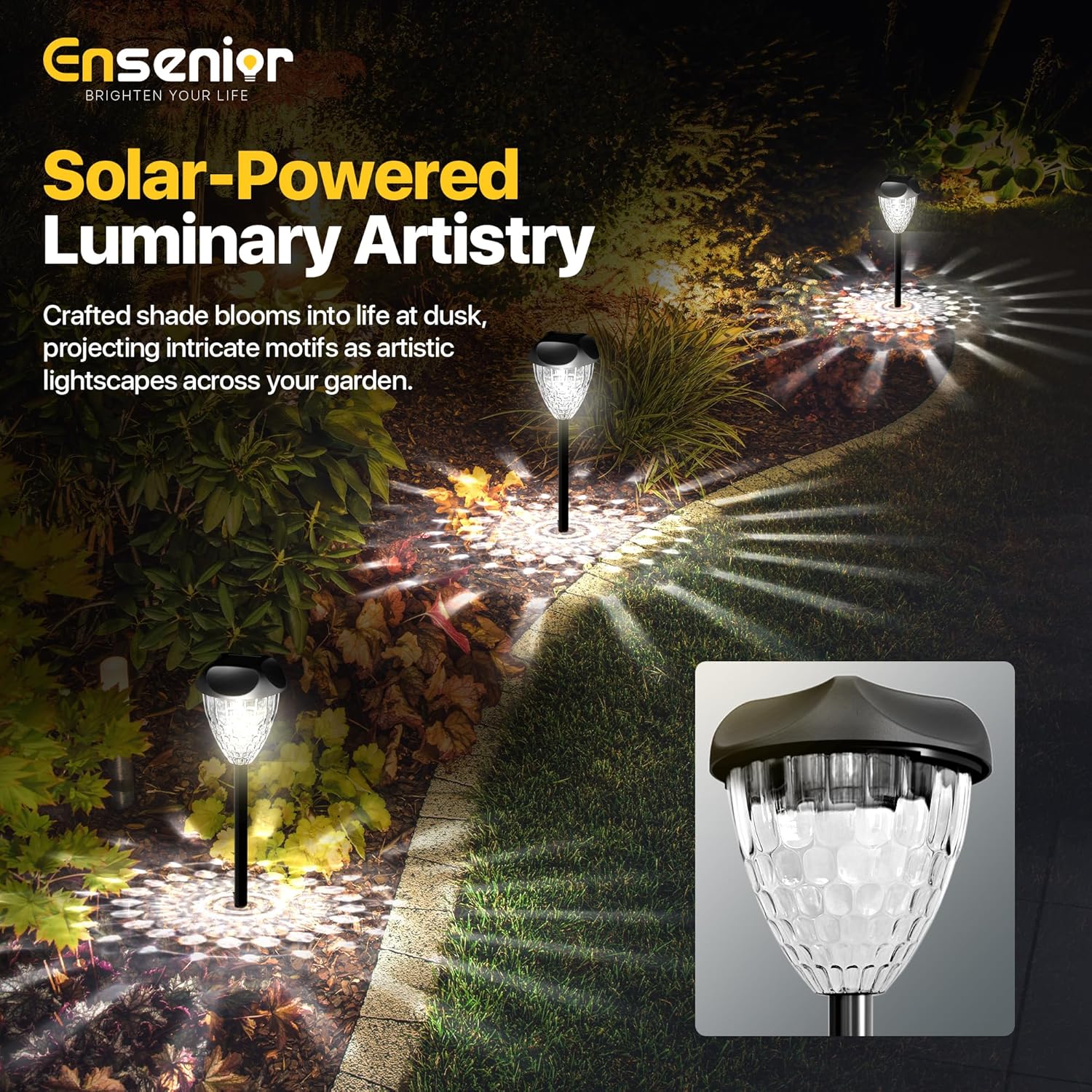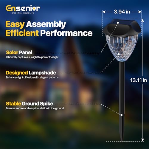 Ensenior 6500K Solar Outdoor Lights 12-Pack