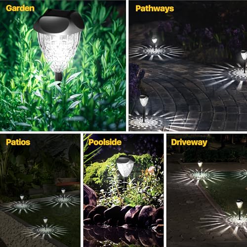 Editor's Pick: This solar outdoor light set includes 12 lights featuring 6500K cool white LED illumination, perfect for lighting up pathways, yards, or patios. With IP65 waterproof rating, they can withstand various weather conditions. The built-in smart light sensor automatically charges during the day and turns on at dusk. Installation is simple with no wiring required.