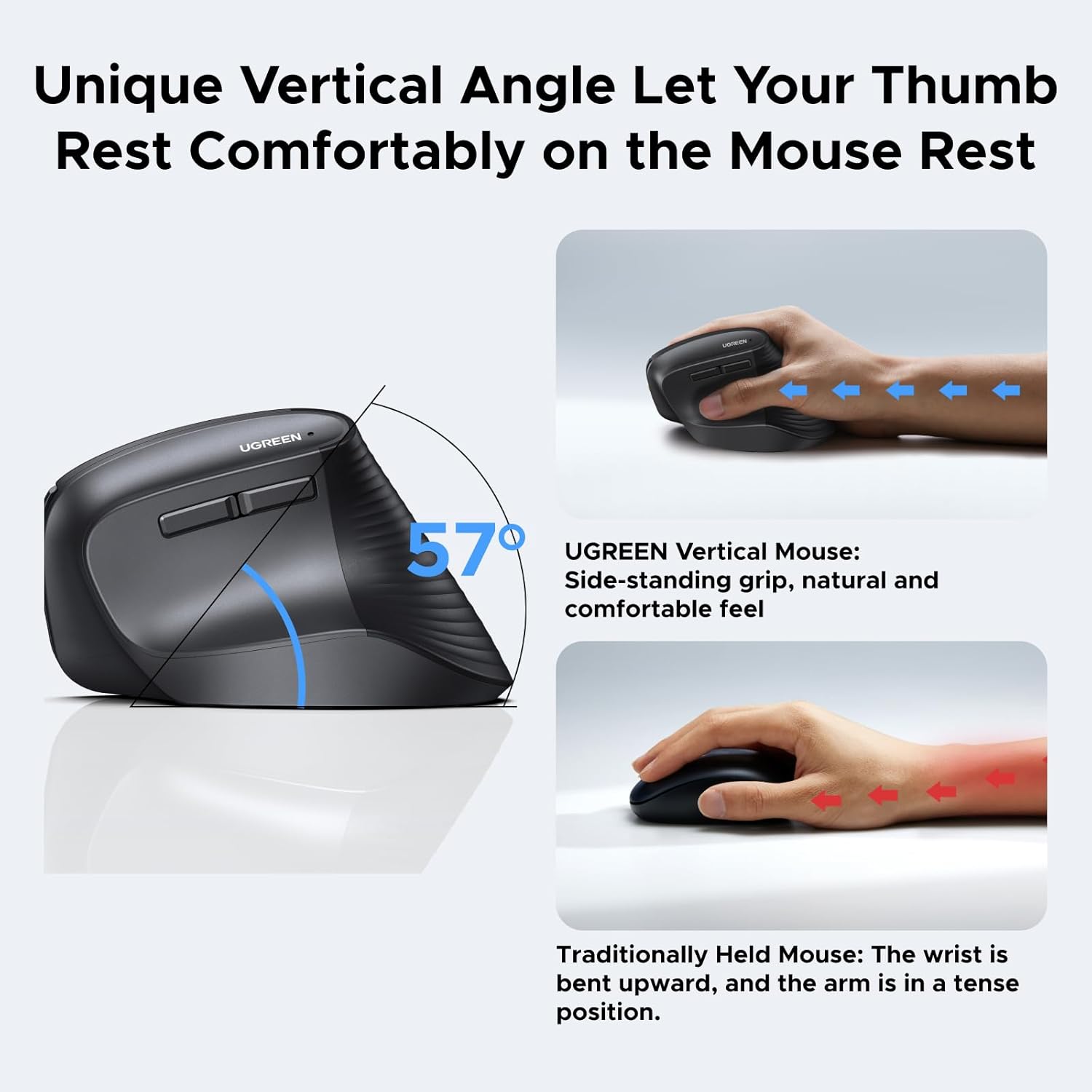 UGREEN Wireless Vertical Mouse Bluetooth Dual-Mode 4 DPI Shop Now