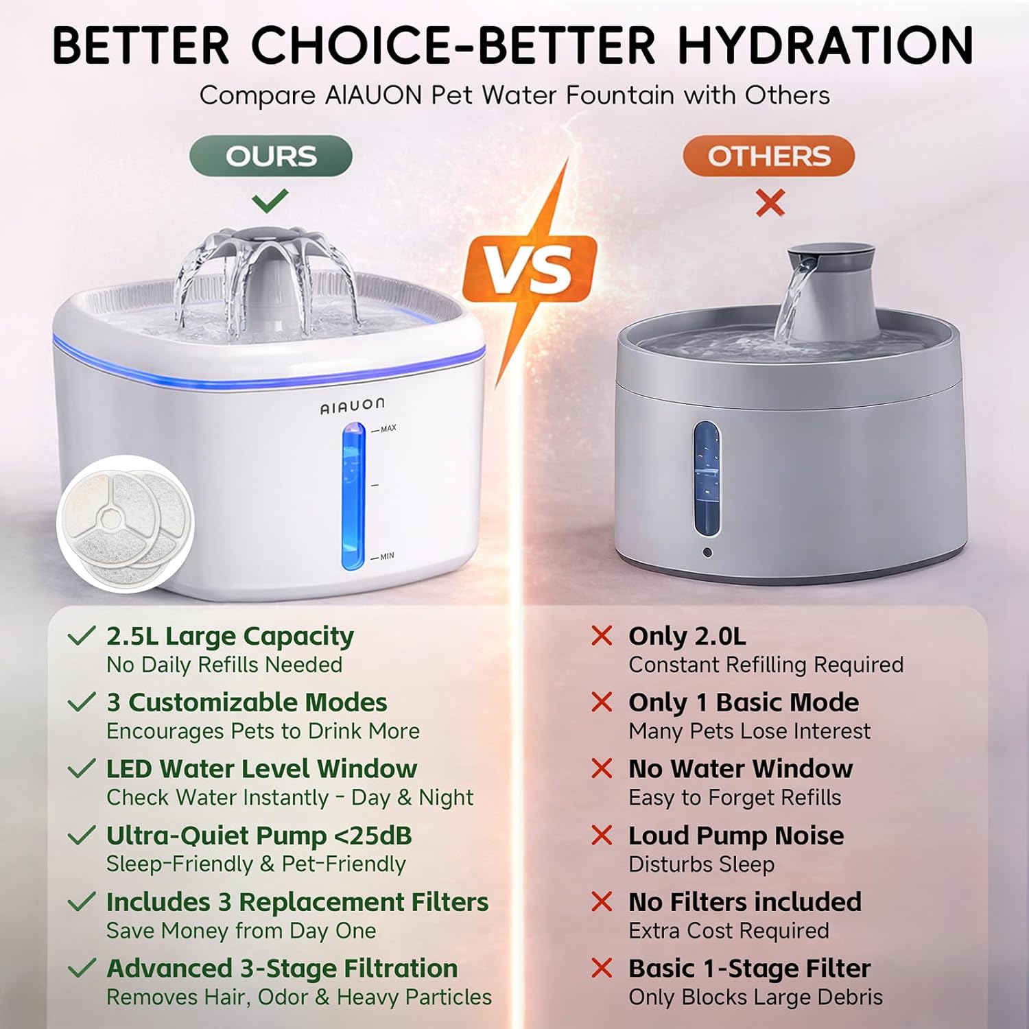 AIAUON Cat 2.5L Ultra Quiet Pet Water Fountain